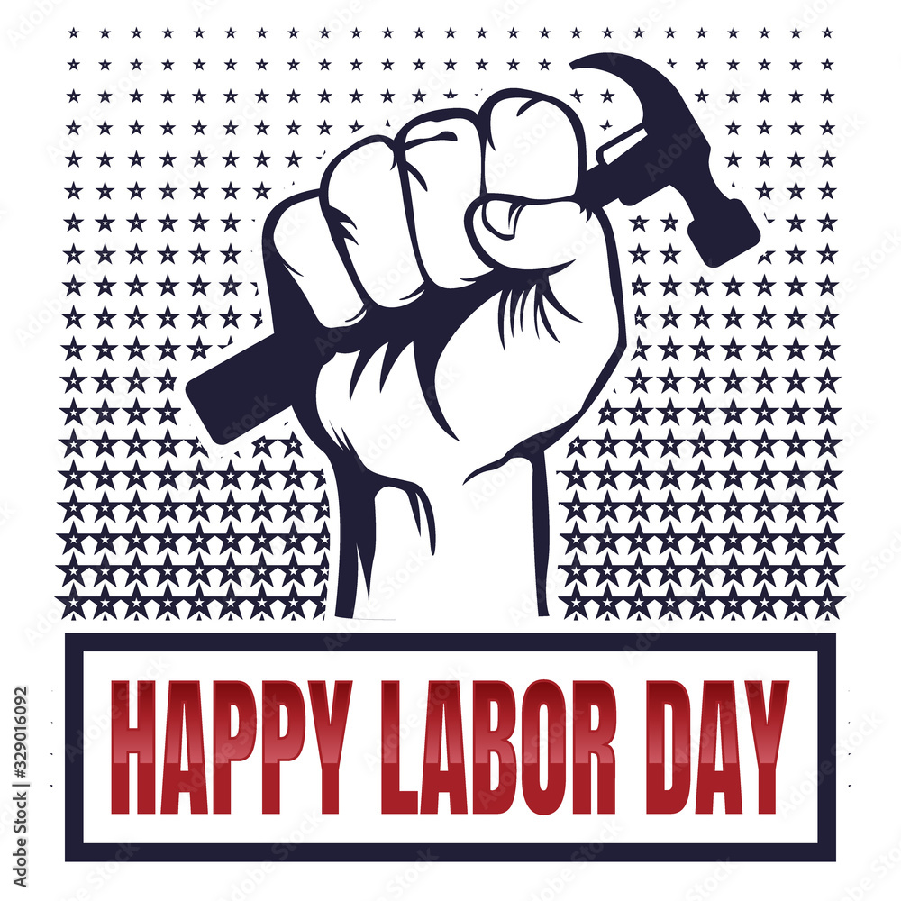 Vector Happy Labor Day Card National American Holiday Illustration With Hand Tools Festive Poster Or Banner With Hand Lettering Stock Vektorgrafik Adobe Stock